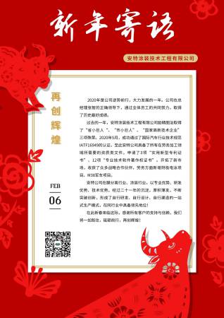 值此新春佳節(jié)來臨之際,安特涂裝技術(shù)工程有限公司祝大家新春快樂,虎年大吉,龍騰虎躍! ……[詳細]
